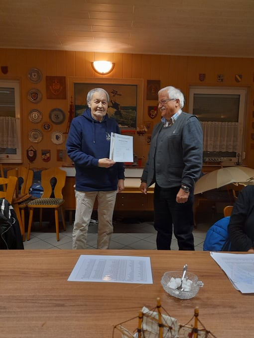 Noch im April 2022 haben wir bei unserer JHV Herrman zu 50 Jahre Mitglied im DMB und der MKO gratuliert und die Urkunde und goldene Nadel des DMB überreicht. Jetz ist Hermann auf seiner sprichwörtlich letzten Reise von uns gegangen. Auf einem Segeltörn nach Norwegen ist Hermann am 11.8.2022 gestorben. Wir sind in tiefer Trauer und sprechen unser Mitleid aus zu seinem Sohn Patrick Frey.